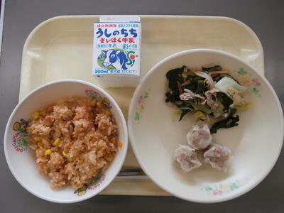 魚のあけぼの焼きには、にんじんのすりおろしが入ったソースがかかっており、ほんのりと赤みがかっています。