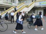 朝もようやく涼しくなってきました。学校近くの十字路に立っていると、多くの子供たちは「おはようございます」と元気な挨拶をしてくれます。自転車は、左側通行で一列で走行します。歩行者はガードレールや縁石の内側の歩道を歩きます。社会の基本的なルールです。しっかり守りましょう。