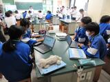 午後、2年生のクラスで市教研の理科の研究授業が行われました。様々な実験を興味深く行う姿がありました。グループで説明したり、課題のまとめを発表しました。積極的な姿勢いいです。