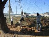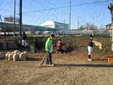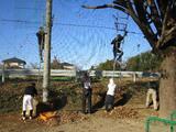 が、集まってくれました。防球ネットの修繕を行う予定です。野球部のメンバーも集まっています。