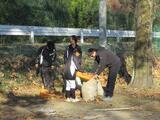 木の伐採、枝切り、防球ネットの修繕、落ち葉集め、通学路(ゆずり葉橋)周辺の除草等、学校内外のあらゆるところの環境整備に取り組んでくださいました。寒い中でしたが、少し汗ばむほどでした。