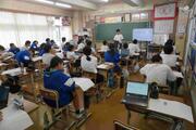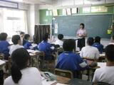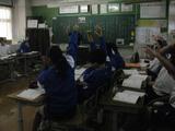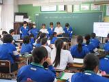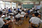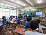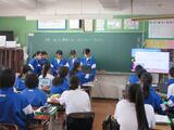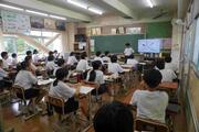 5組は、先生の中学校時代の写真が提示されるなど、明るい雰囲気で授業が行われていました。