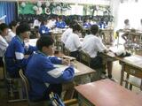1年生:理科 光を使った実験を班ごとに行っています。「こうすればいいのかな。」など協力して取り組みます。