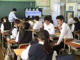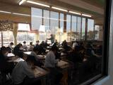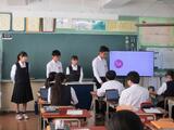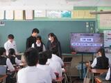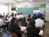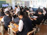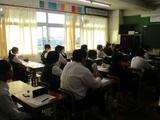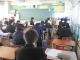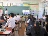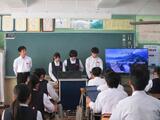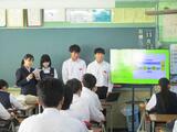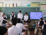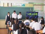 今日の校内公開授業は、3年生の理科の授業です。様々なエネルギーについて、各班がそれぞれに利点や課題等について発表します。自分たちの調べたことをどうしたらよりよく伝えられるのか、パワーポイントで示したり問いかけたりしながら、工夫していました。また、聴く方も、要点を捉えながら、メモを取る姿がありました。