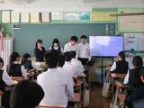 本校では、学校課題研究「『個別最適な学び』と『協働的な学び』のある学習指導」を実践しながら、子供たちの学力を伸ばすのために日々取り組んでいます。教科の別なくお互いの授業を公開し、授業力の向上を図っています。本日は、2年生の社会科の授業です。各班での発表をとおして、気付き、考えを深めている子供たちの姿がありました。