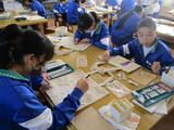 学校探検では、中学生らしく小学生のそばにつき、案内していました。