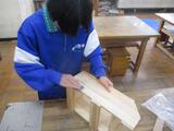 人数がいなくても、ゆずり葉では元気な声が聞こえます。技術では、本立てをつくっています。