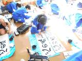 ゆずり葉学級では、1時間目から入念に準備して他の学校をお迎えしました。今回は12のチームに分かれるので、まずはチーム内の自己紹介を行いました。事前に準備していた自分で書いた名札で自己紹介し、仲を深めました。