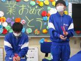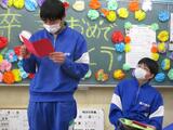 そして、後輩から3年生への言葉です。それぞれの気持ちを伝えることができました。教員から伝えさせてもらい、色紙係が用意した色紙を渡します。2人の色紙には、きれいな桜の木とこれまでの思い出が花を咲かせていました。